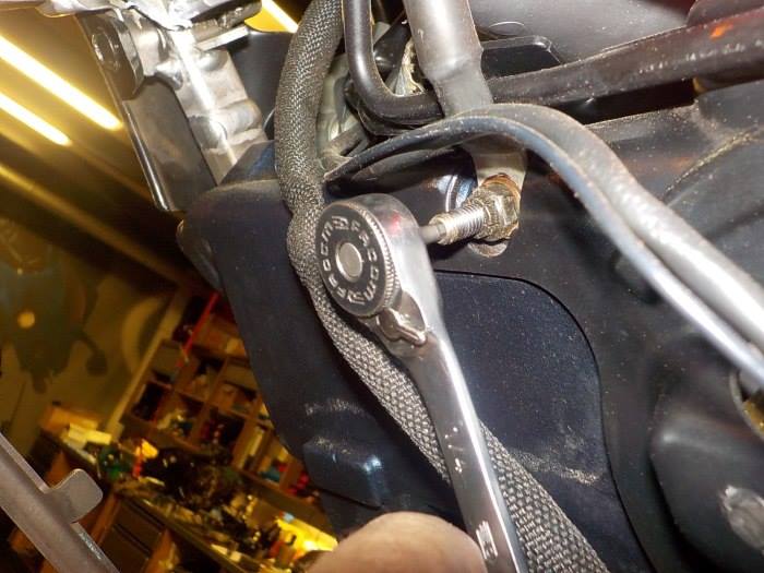you need to srew out the stud to remove the ground cable — at Twin Motorcycles Buell Support forever.