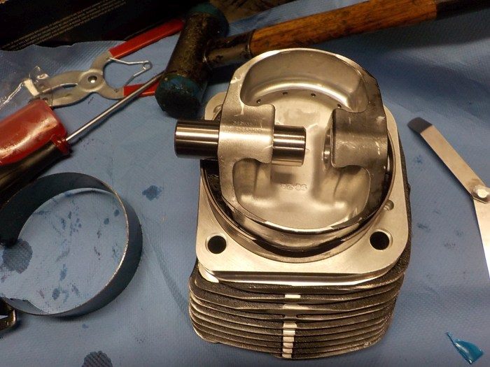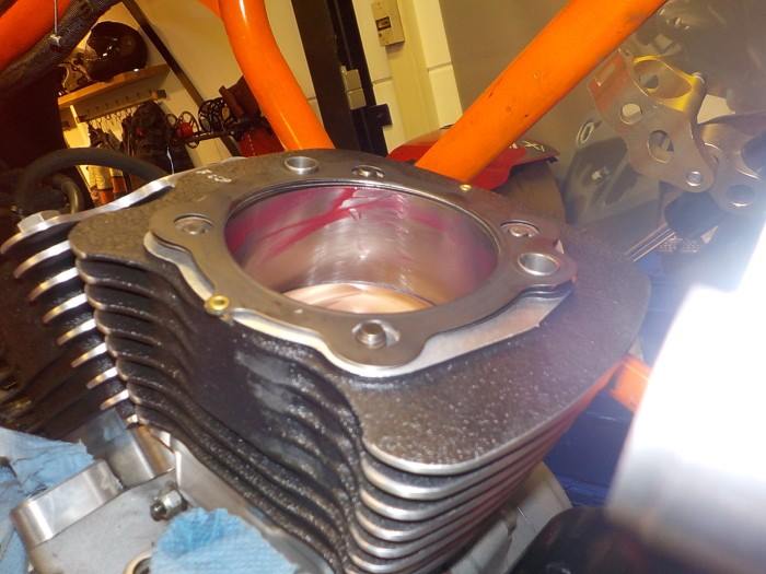 i expect to fitment troubles , but with bought cylinders mounted.. rear wheel up and in 5e gear to turn the crank to see if the pistons clear each other