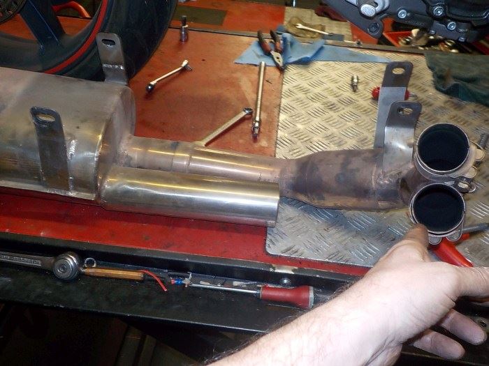 intersesting design. resonator chamber and katalistic converter — at Twin Motorcycles Buell Support forever.