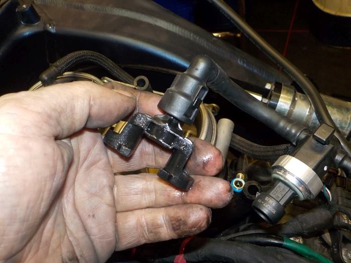 the new full metal sensor housing and fuel line connector , compaired to the plastics one ( very fragile , bad for fuel line )