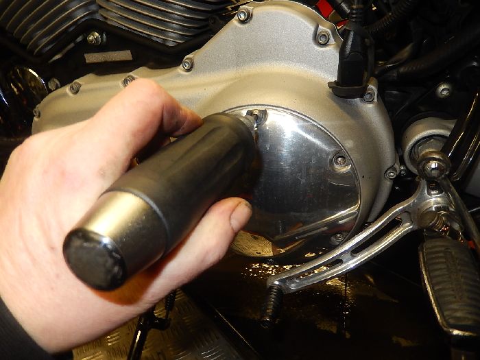 XR1200 big maintenance , stubborn clutch cover screw, worn out.