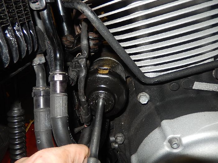 XR1200 big maintenance, replace oil filter.