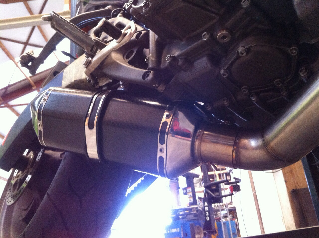 Yesterday I took the bike to a track day event at Palm Beach international Raceway. The system performed really well. During the first two sessions I felt a couple "hiccups" when accelerating out of corners but that went away. The bike had great response and power was always readily available. I felt like I could power out of the corners quite well and that it was steady up to the rev limiter. I also really like the sounds and received several compliments about how good the system looks.