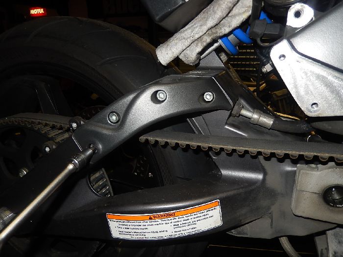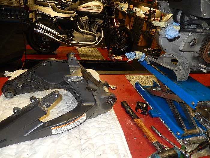XB12S customizing long swing arm conversion, removing the swing arm brace ( only do this with the belt tension off )