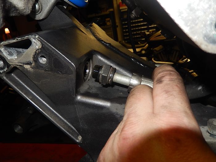 XB12S customizing long swing arm conversion, tighten the swing arm pivot.