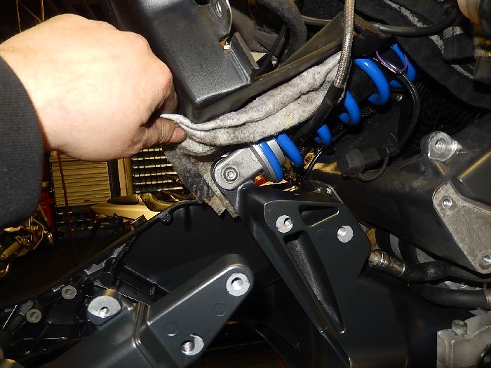 XB12S customizing long swing arm conversion, draining oil from the swing arm.