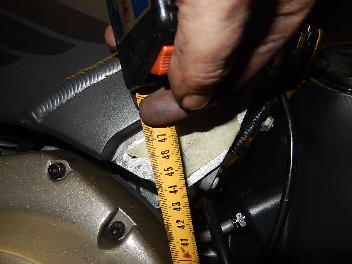 XB12S customizing long swing arm conversion, height markings for later use.