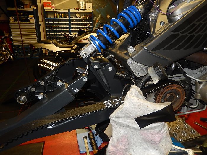 XB12S customizing long swing arm conversion, long belt on.