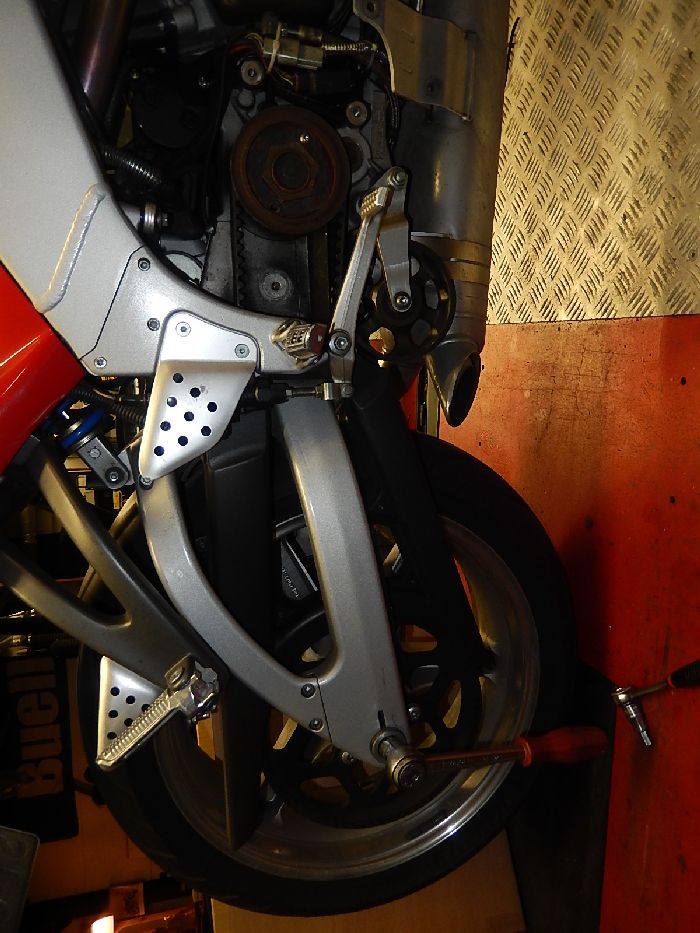 XB9R, prep for engine rotation, very glad they used this construction only in the 2003 models... as it is really bad, nuts pulling out off the rubber.
