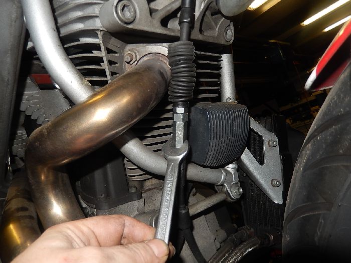 XB9R, prep for engine rotation, clutch cable adjuster loose.