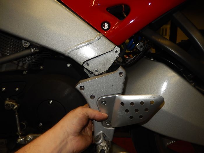 XB9R, prep for engine rotation, left foot peg bracket off.