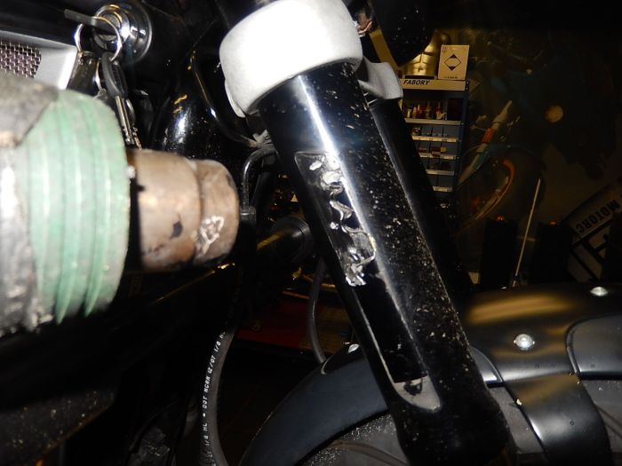 XR1200, last things, removing the front fork reflectors, there hold on with double sided tape, with a heat gun they will remove more easy.