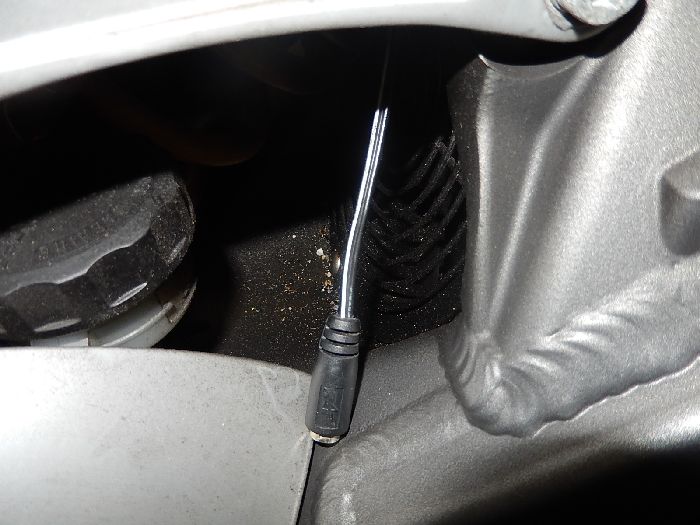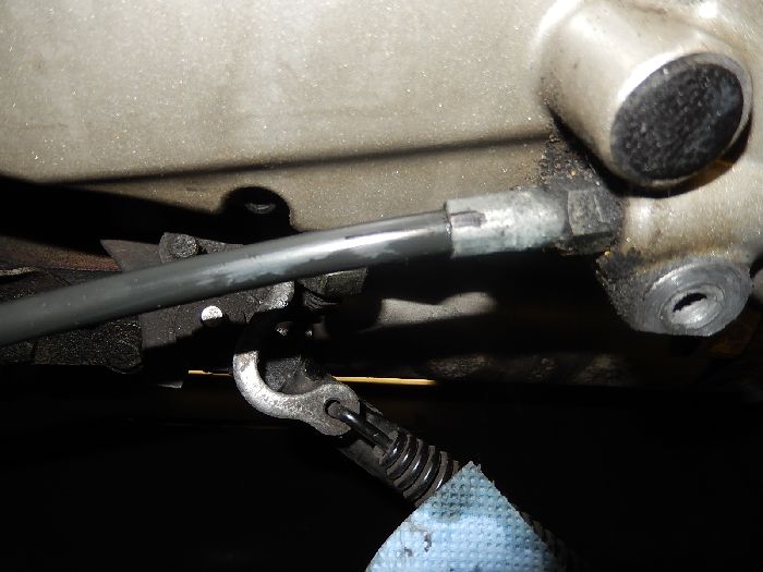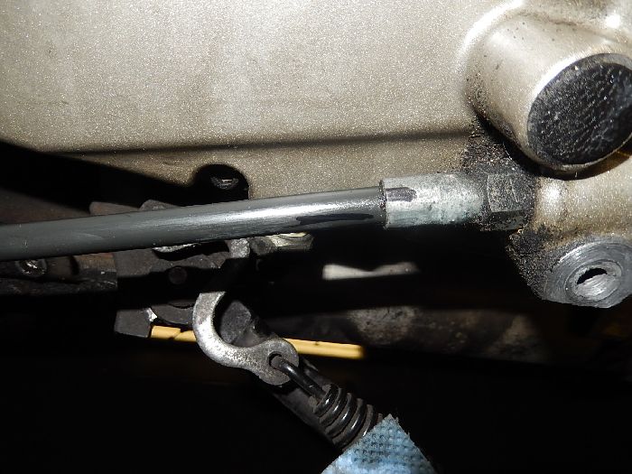 Buell Xb12SCG 2007, check up and repairs, you see here i can twist this a 1/4 turn, this will leak gearbox oil hard.. the cable is probely put on when it was mounted, this will cause the cable very easy to twist in the fitting.