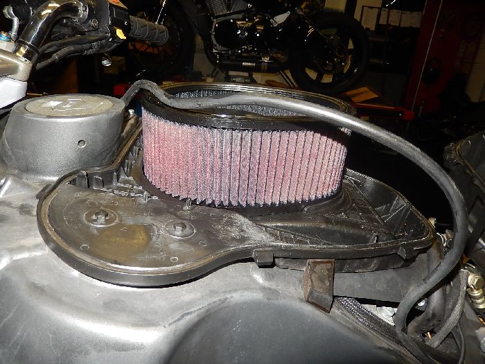 Buell Xb12SCG 2007, check up and repairs, airfilter base plate cleaned , air filter cleaned and re oiled.