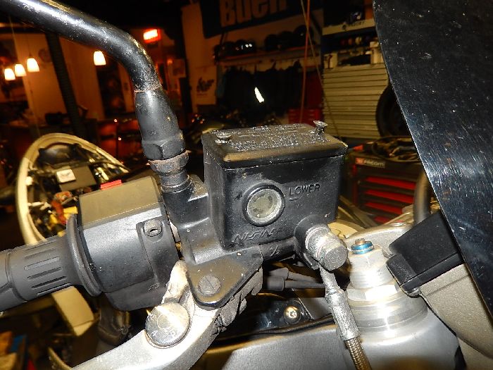 Buell Xb12SCG 2007, check up and repairs, brake fluid replacement.