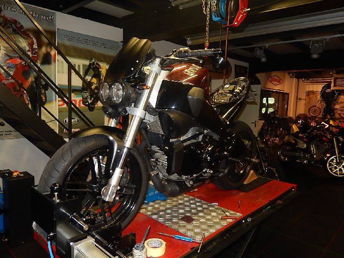 Buell XB9-12 conversion, ready for dyno after some small repairs.