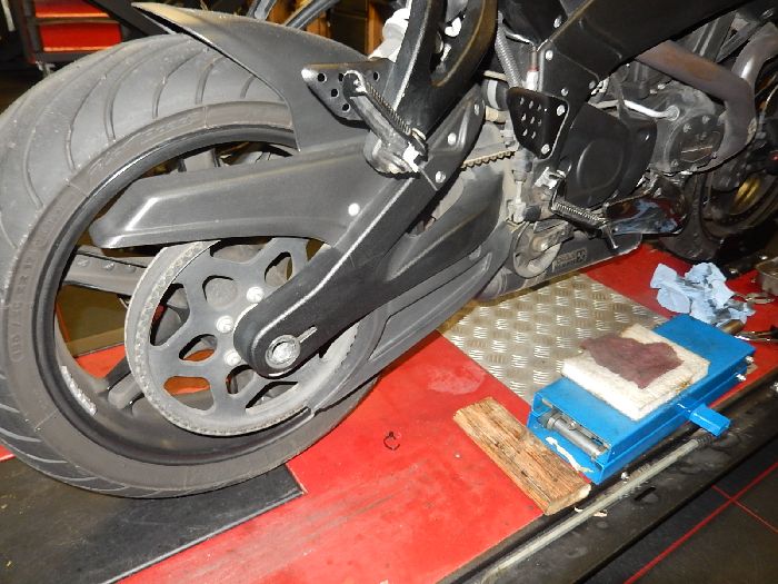 Buell XB12SS, rear tire change , tight axle , needs the breaker bar to loosen it.