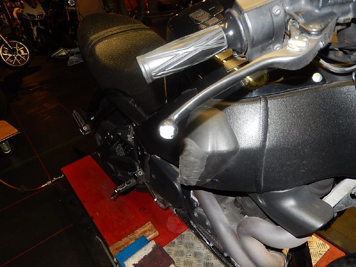 Buell, XB12SS, droping, battery change and replace lost barend cap.