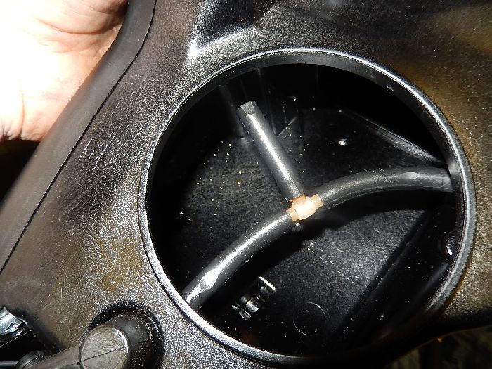 XR1200, Service , the bike was leaking watter and oil out off the air filter, the breather hose was not correctly in position so the breathers condensation was accumulating in the airfilter box.
