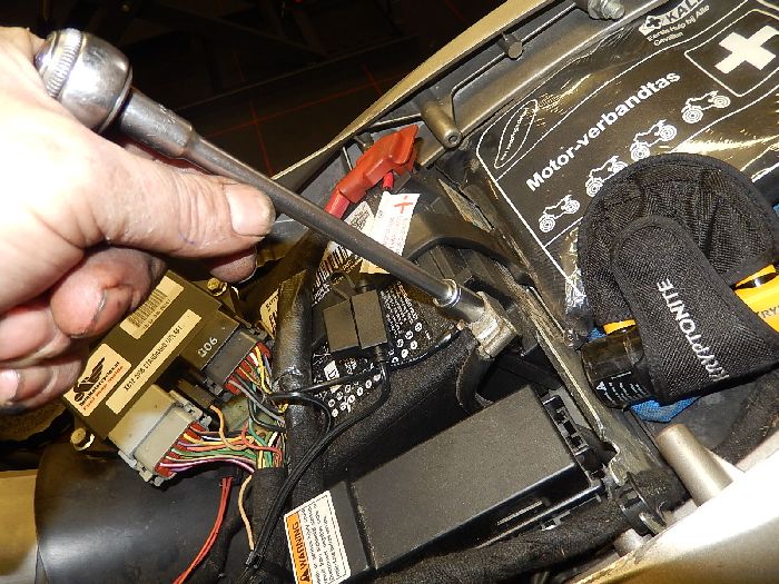 Buell 1125R, 2009, Small service, so basic check, remove the tail section to have a look at the relais, this was not the problem, as the error is not really important, and the customer did not want me to put allot off time in this, i switched off the function in the ecm.