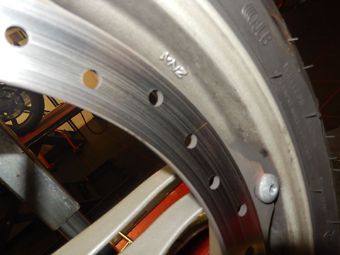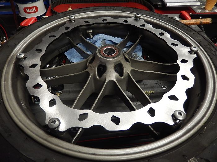xb12X, 2006, small service, front wheel out and new disk mounted.