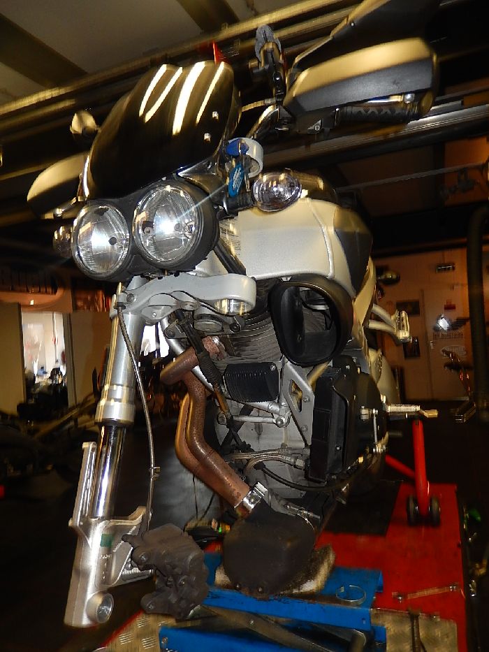 Buell Xb9S, long boat trip, engine down to have a good look.
