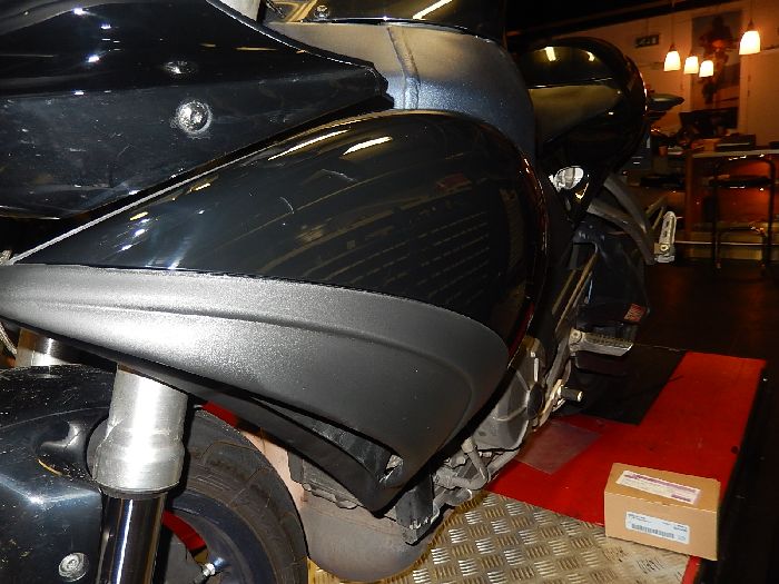 Buell 1125 R , small mishap repair , pod cover scratch.