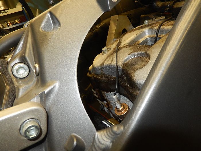 Buell 1125 R , small mishap repair loosening the right footpeg bracket will help the exhaust come off more easy.