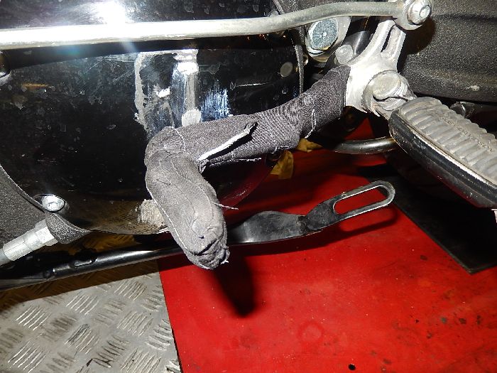 XR1200X little mishap, customer made a temperoty shifter as the stock one broke after a little mishap pushing the bike to flat in the corner.