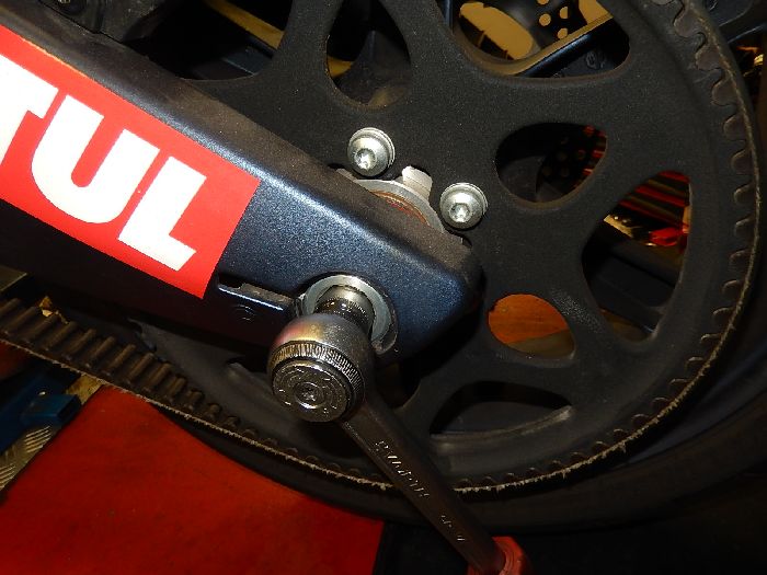 XB12XT 2008, hammer time, screw off from the belt tensioner idler pulley.