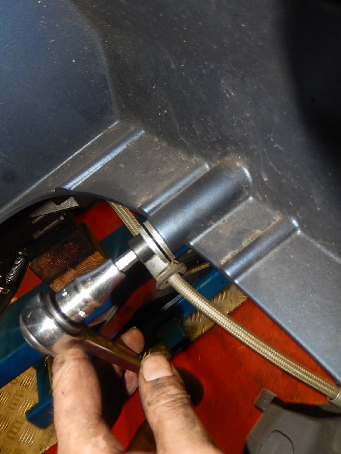 1125 testing new headers for fit form , loosen the brake line brackets inside.