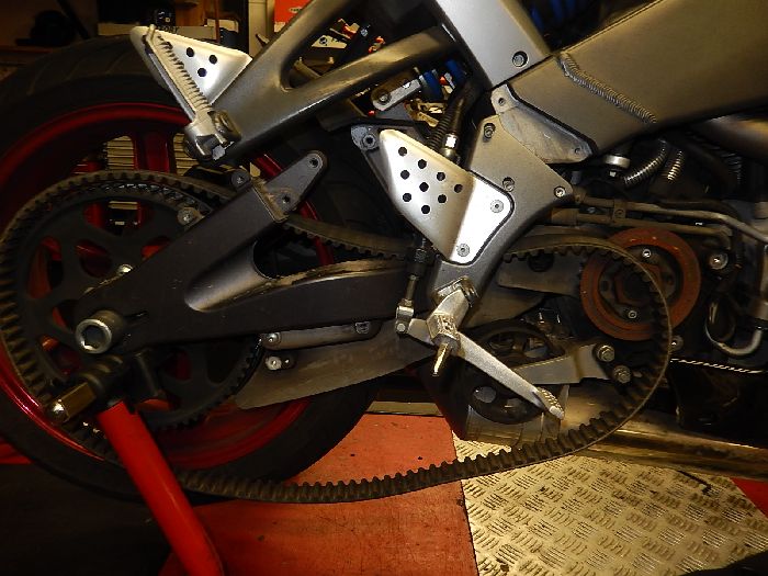 Mount back the foot peg mounting plate , little drop off Blue loctite , and tighten the screws to 14NM