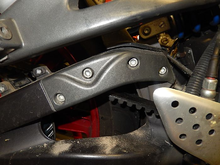 Now loosen and remove the swing arm brace bolts and take off the brace