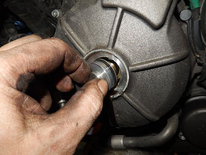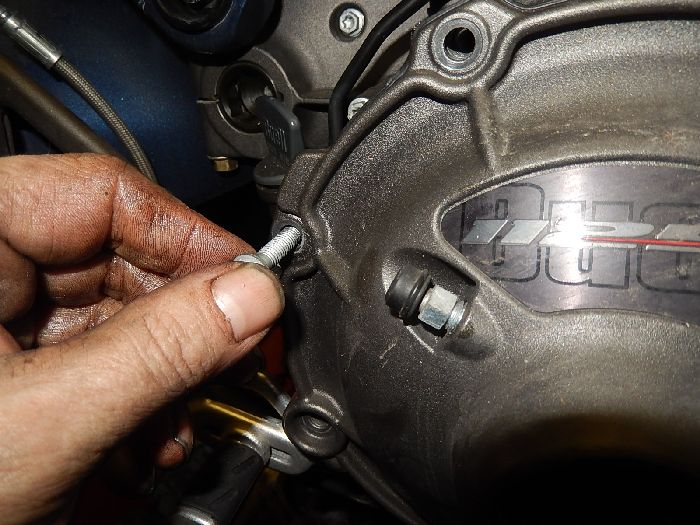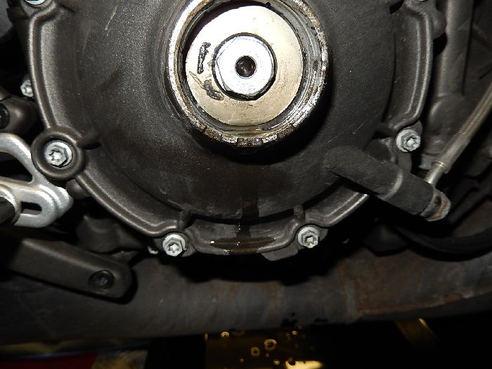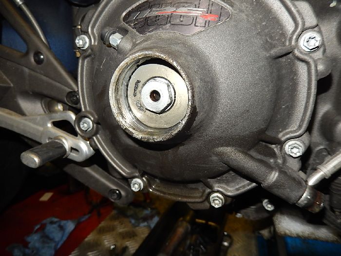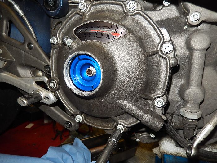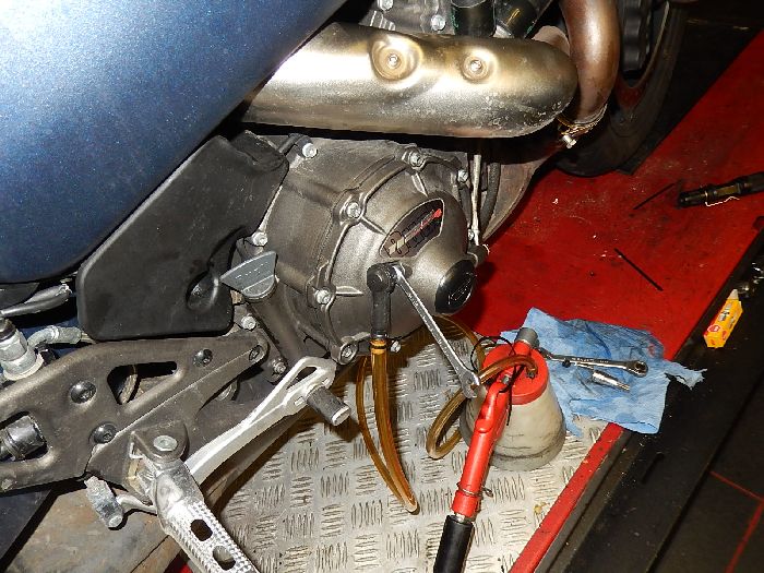Big service 1125R, the clutch cover showed little signs off leaking, but was dry , untill i took off the cover plug and a liberal amount off brake fluid leaked out... ok new clutch slave cylinder.