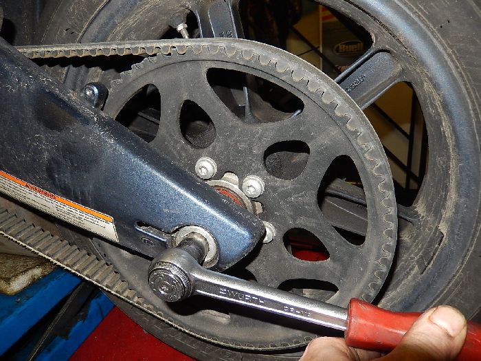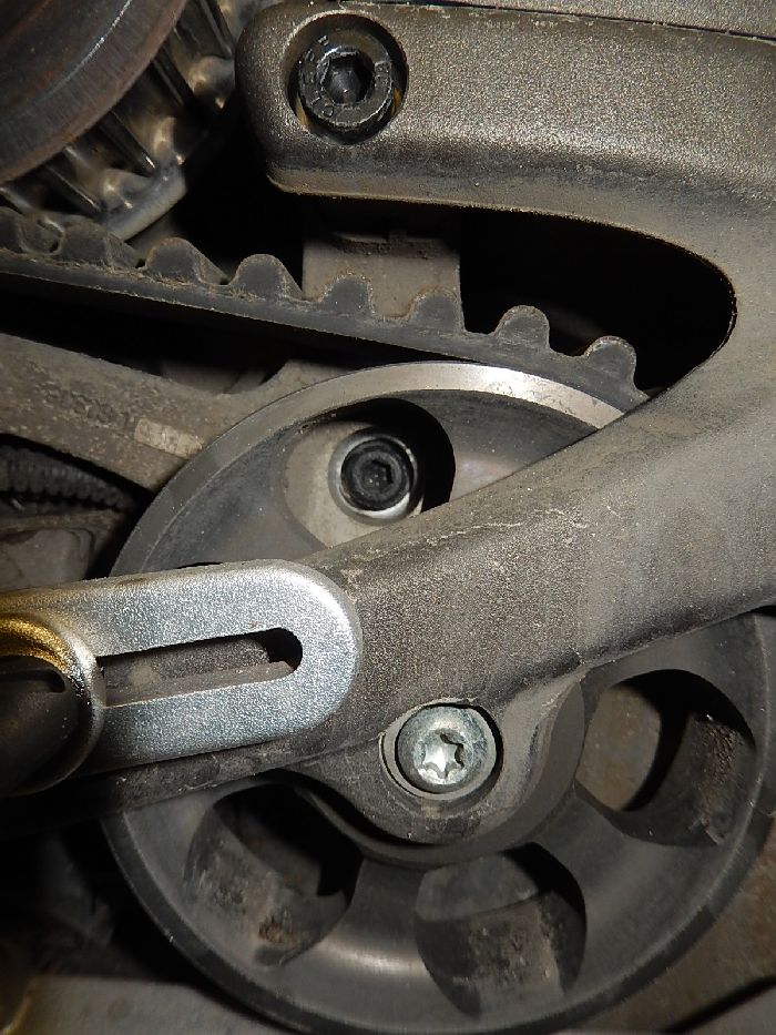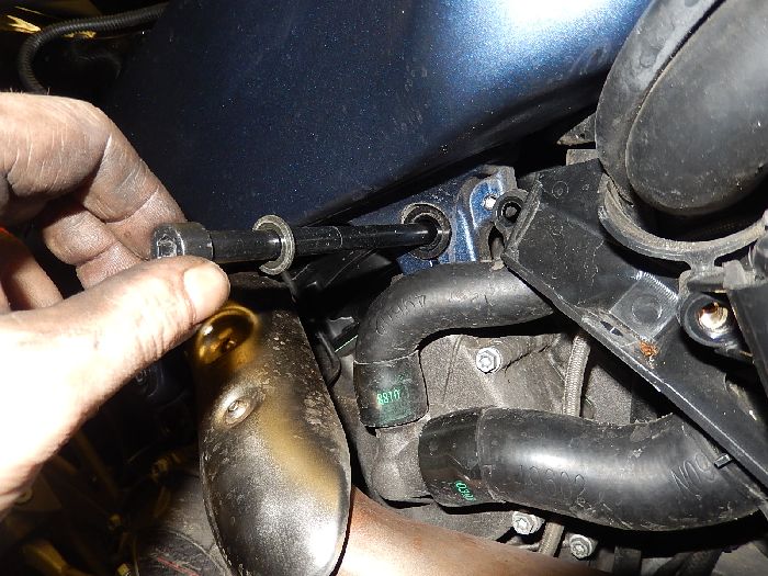 Big service 1125R, engine back up, this can take some pushing and pulling , start tightening left side ( the fixed to the frame side )