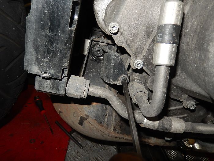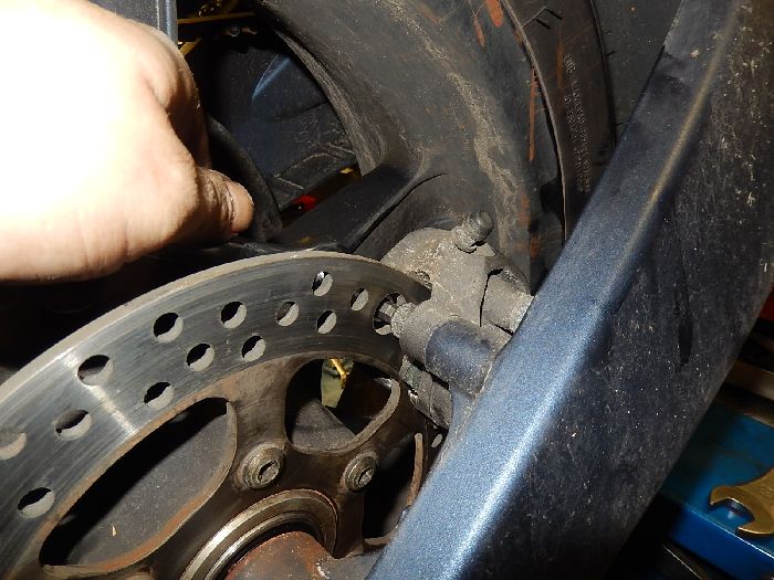Big service 1125R,rear wheel out to replace the bearings ,with a long extension you can unscrew the brake caliper from the left side.