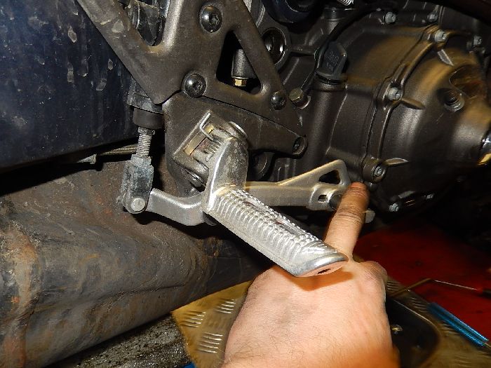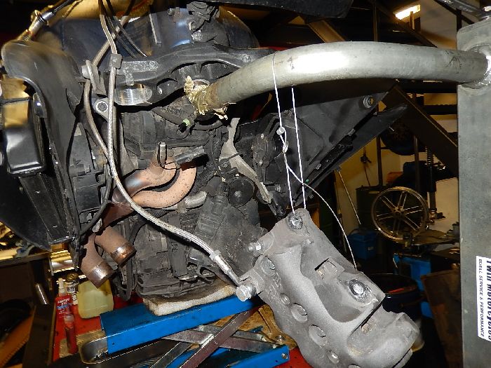 Big service 1125R, exhaust off for engine rotation , the 2008 versions had a 2e brace on the right front mounting point.