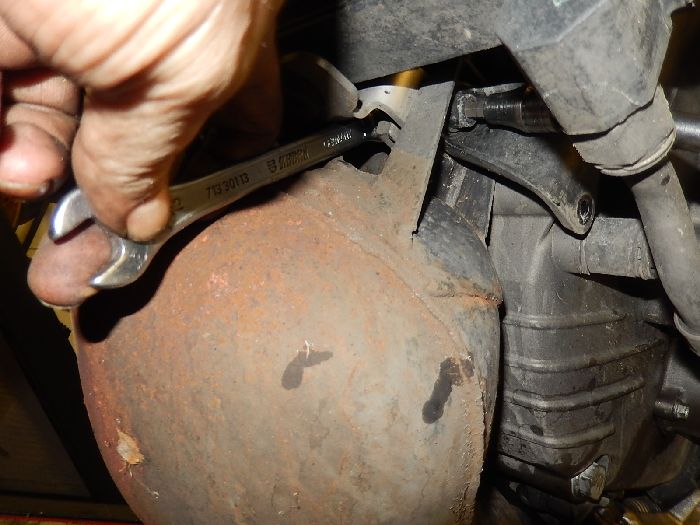 Big service 1125R, the right front bolt needs a spanner 13 mm to loosen the bolt, the rest off the bolts have sliding nuts fixed in the exhaust.