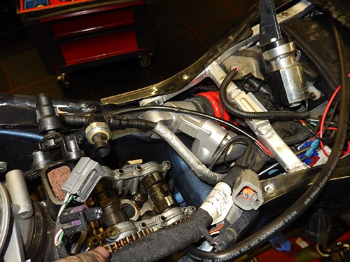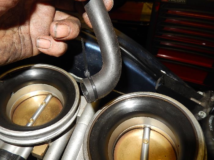 Big service 1125R, a little ziptie on the idle air hose makes sure it will not pop off during installation off the airfilter base plate.