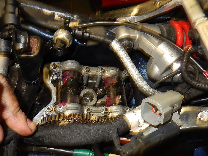 Big service 1125R, adjust and turn the engine a rotation so the shims seat, and measure if the adjustment was correct , and put the finger slide protection back in , the intake where good btw.