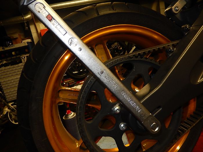 XB12SS service , so rear wheel back in , TQ rthe axle.