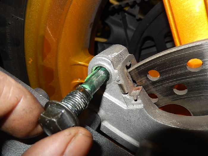 XB12SS service, rear caliper mounting bolts in to support the caliper while i loosen the sliding bolts.