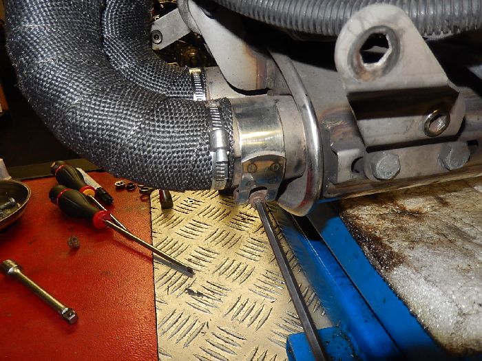XB12SS service , exhaust nut is not loose , the treads are gone. a screw driver helps to give some tension to remove it.