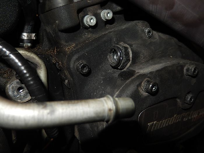 XB12X , gearbox oil drain, and shifter removed.
