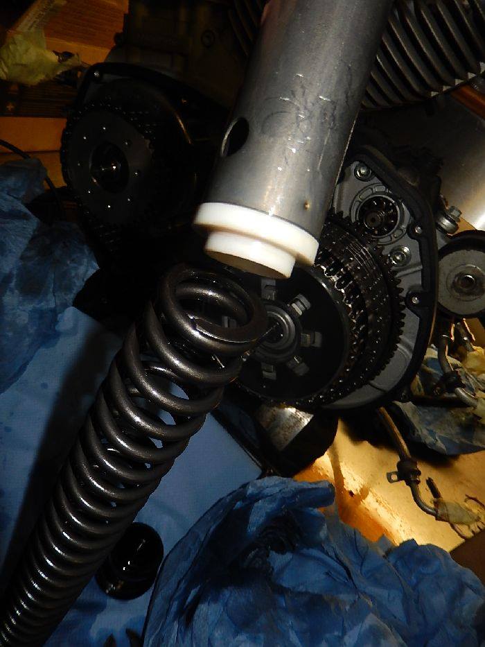 XR1200 repairs, the left leg has a "normal" spring construction , taking off the preload and remove the spring , and drain the leg.