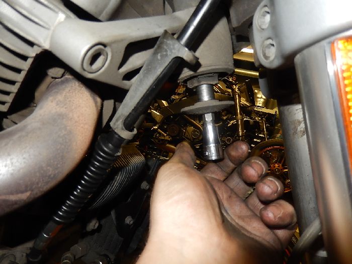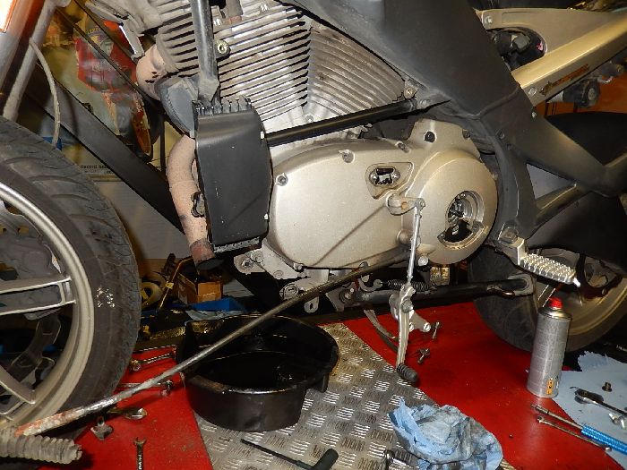 Daily driver uly , as the bike was running rough i supected leaking intake seals, tested and indeed the did leak, during oil drain strip the rest off the top side , rotating a engine with a big service is making some things really easy.