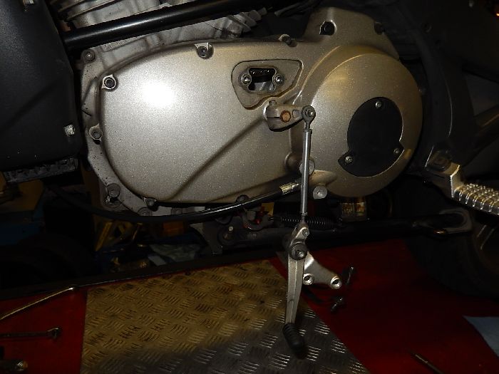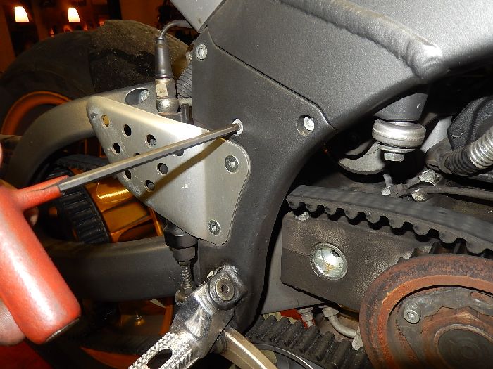 XB12S finishing, belt change, remove the footpeg bracket.