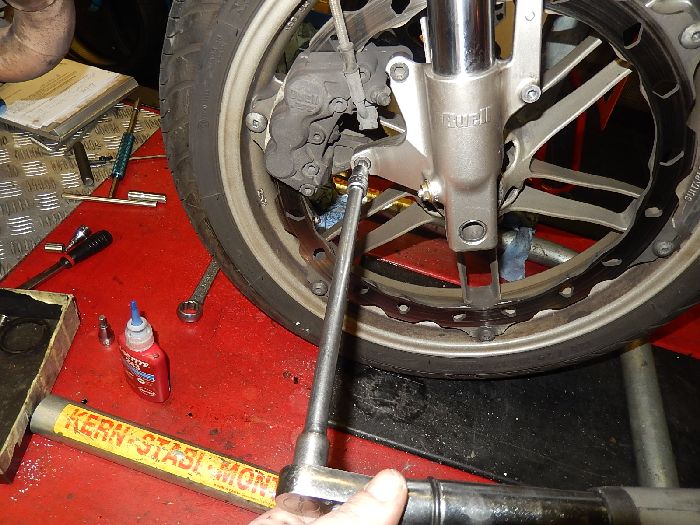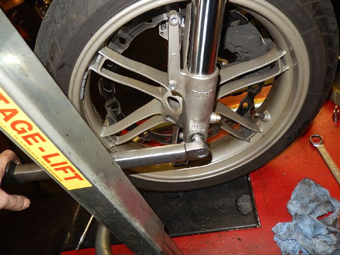 XB12S finishing, and remove the swing arm brace , after you loosed the axle.