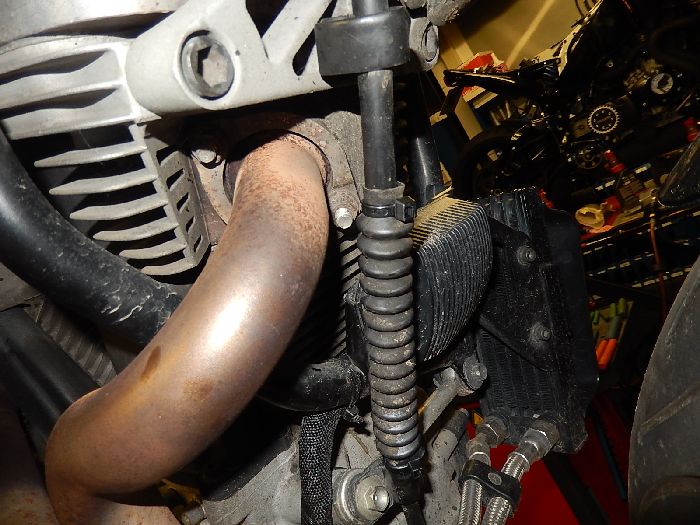 Xb service, adjusted the cltuch cable and ziptied the booth just above the burn mark from the header ( reason so many watter in the gearbox oil )