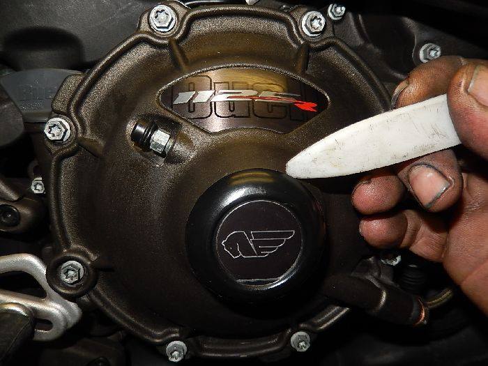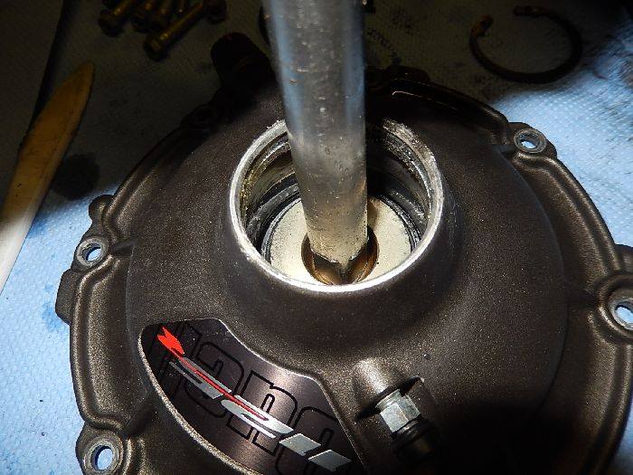 1125R leaking clutch , put the cap back, with a little screw driver or piee off nylon, push in the o-ring while pressing.